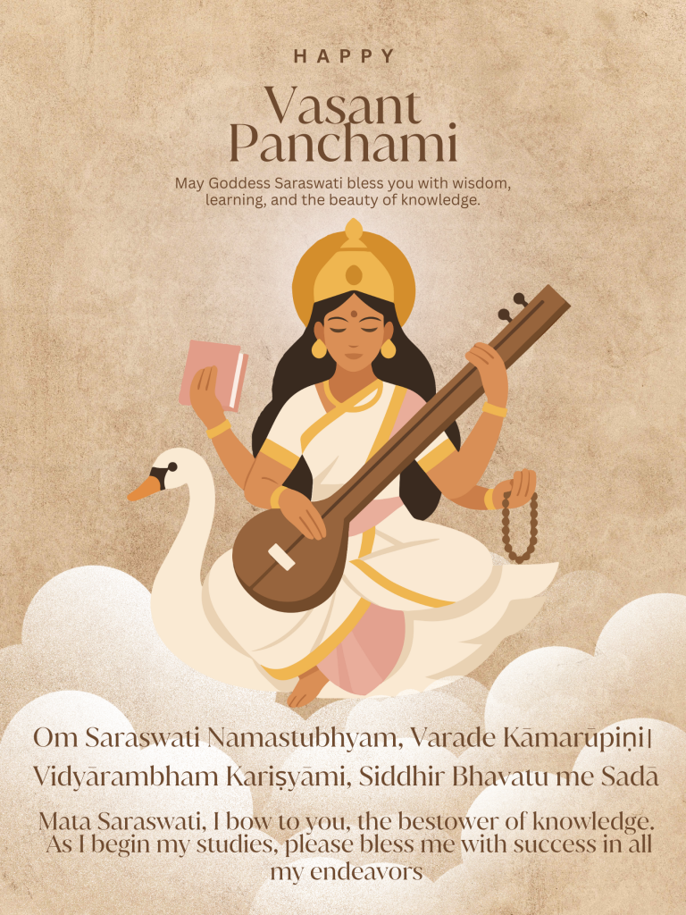 Vasant Panchami is a Hindu festival dedicated to Goddess Saraswati, the goddess of knowledge, wisdom, creativity, music, and learning. Celebrated on the fifth day of the bright fortnight in the lunar month of Magh (January–February), it marks the transition from winter to spring, a season of renewal, growth, and fresh beginnings.